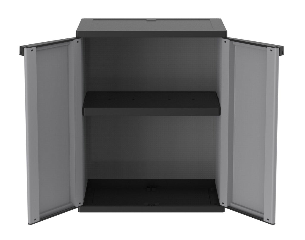 Armoire d'extérieur modulable 68x37,5x85 cm 2 portes 1 étagère en polypropylène Jline gris et noir