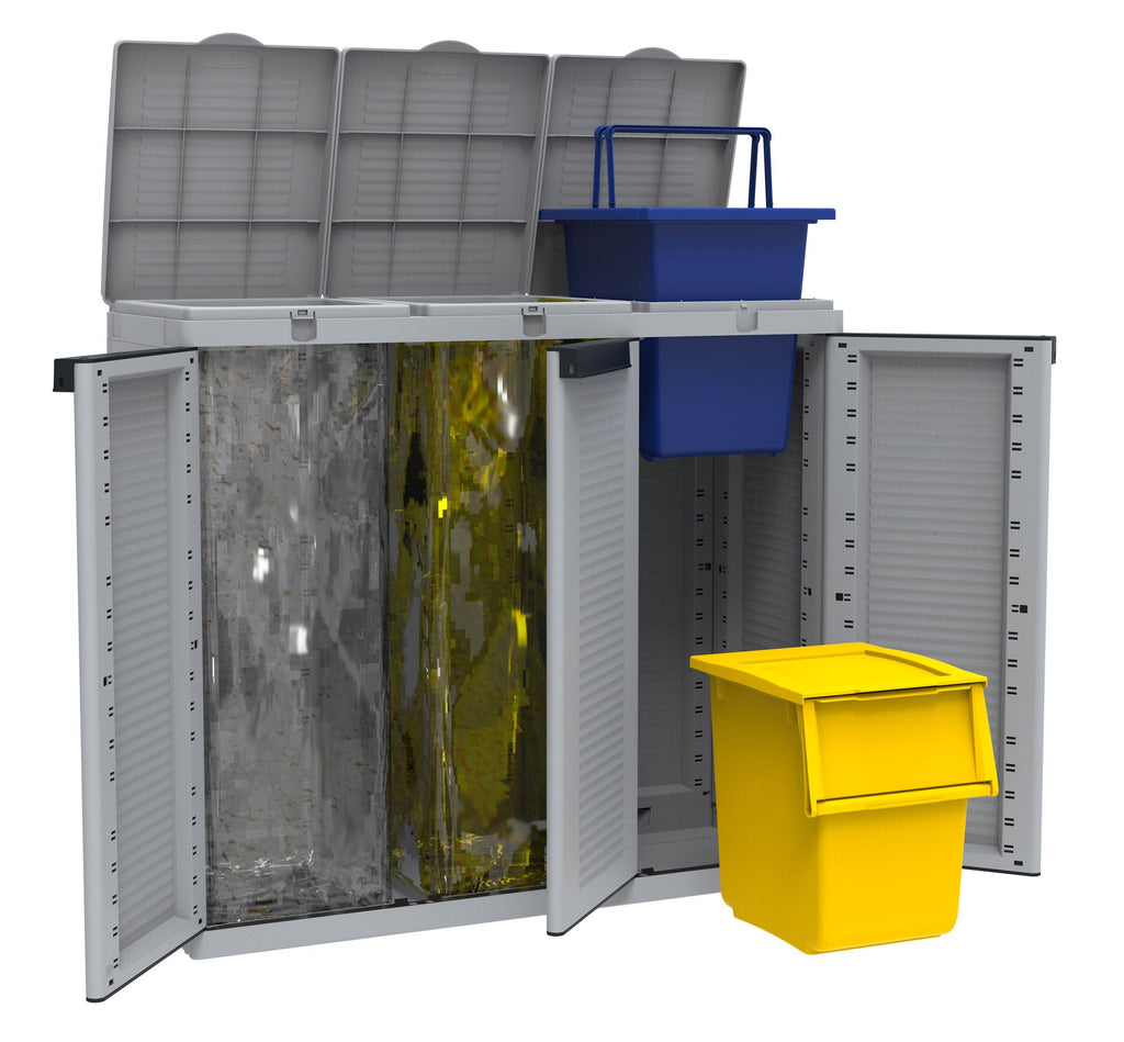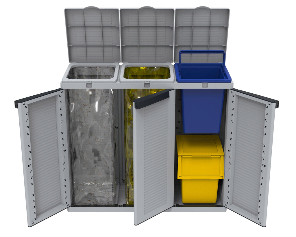 Armoire de tri sélectif 102x39x88,7 cm 3 portes en polypropylène Ecocab gris
