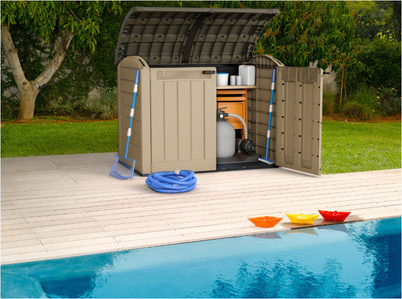 - 2000 litres de capacité, de quoi ranger barbecues, outils, pompes de piscine et vélos