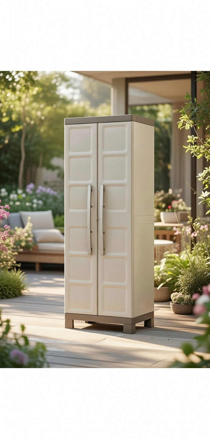 Armadio Portascope da Esterno 4 Ripiani 65x45x182H cm in Plastica Keter Excellence Beige/Tortora
