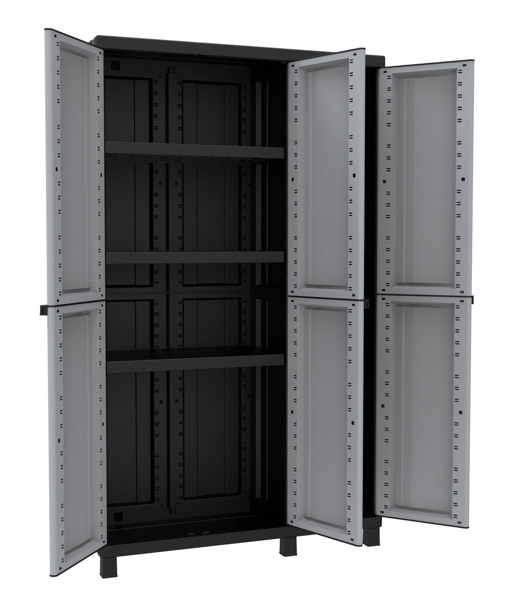 Meuble à balais modulable d'extérieur 102x39x170 cm 3 portes 3 étagères en polypropylène Twist gris et noir