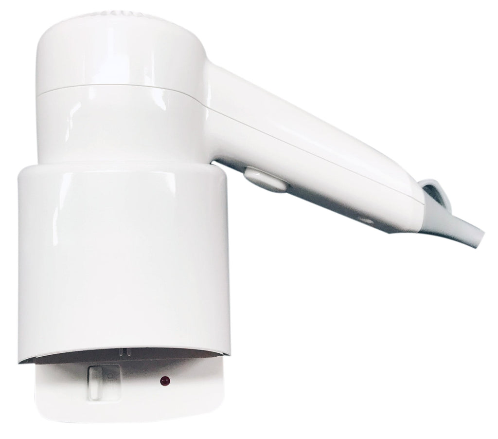 Sèche-cheveux pistolet pour les hôtels et tous les contextes dédiés à l'hospitalité (B&B, résidences, etc.). Best seller aux dimensions extrêmement compactes, il dispose d'une double régulation de la vitesse et de la température de l'air et garantit des économies d'énergie élevées (absorption maximale égale à 1200W). Base murale pour insertion verticale (par dessus) .