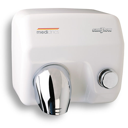 Sèche-mains à air chaud avec bouton en acier blanc Mediclinics Saniflow E05