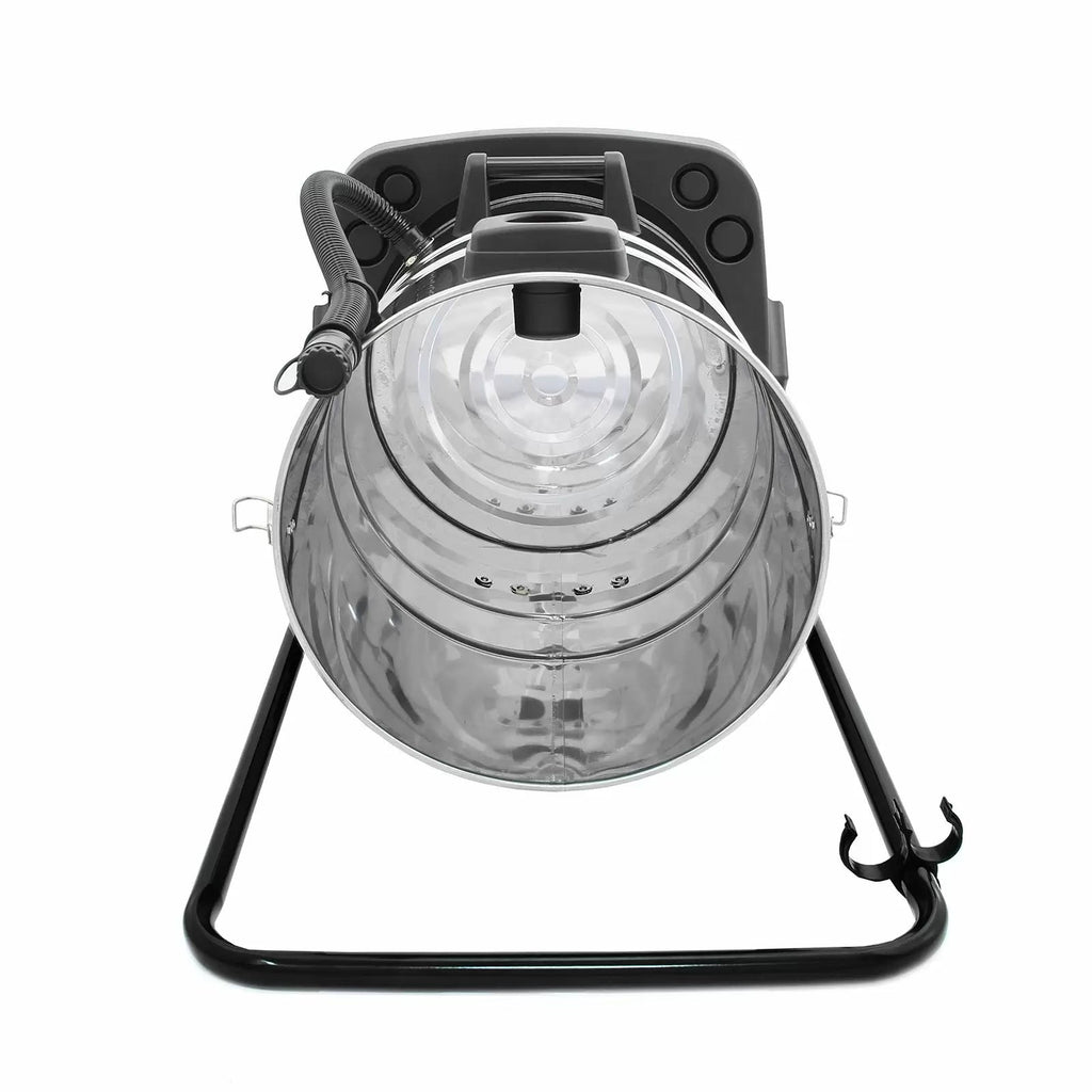 - Grazie alle sue 4 ruote l’aspirapolvere può essere spostato agilmente e la base a cerniera permette al barile di rovesciarsi per uno svuotamente senza problemi