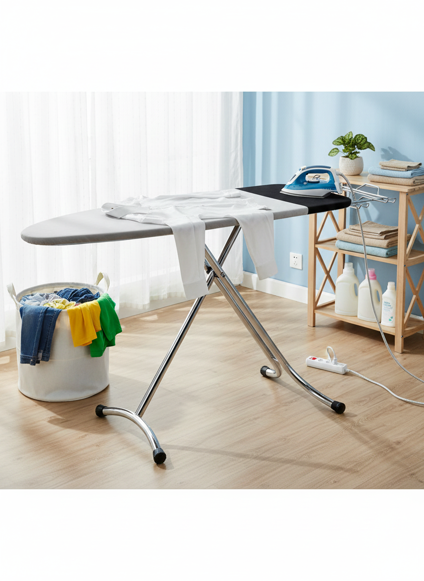 Dotato di un supporto universale scorrevole cromato, è adatto sia per sistemi di stiratura con caldaia separata che per ferri da stiro tradizionali. Il pratico portabiancheria pieghevole ti aiuta a mantenere l'ordine durante la stiratura.
