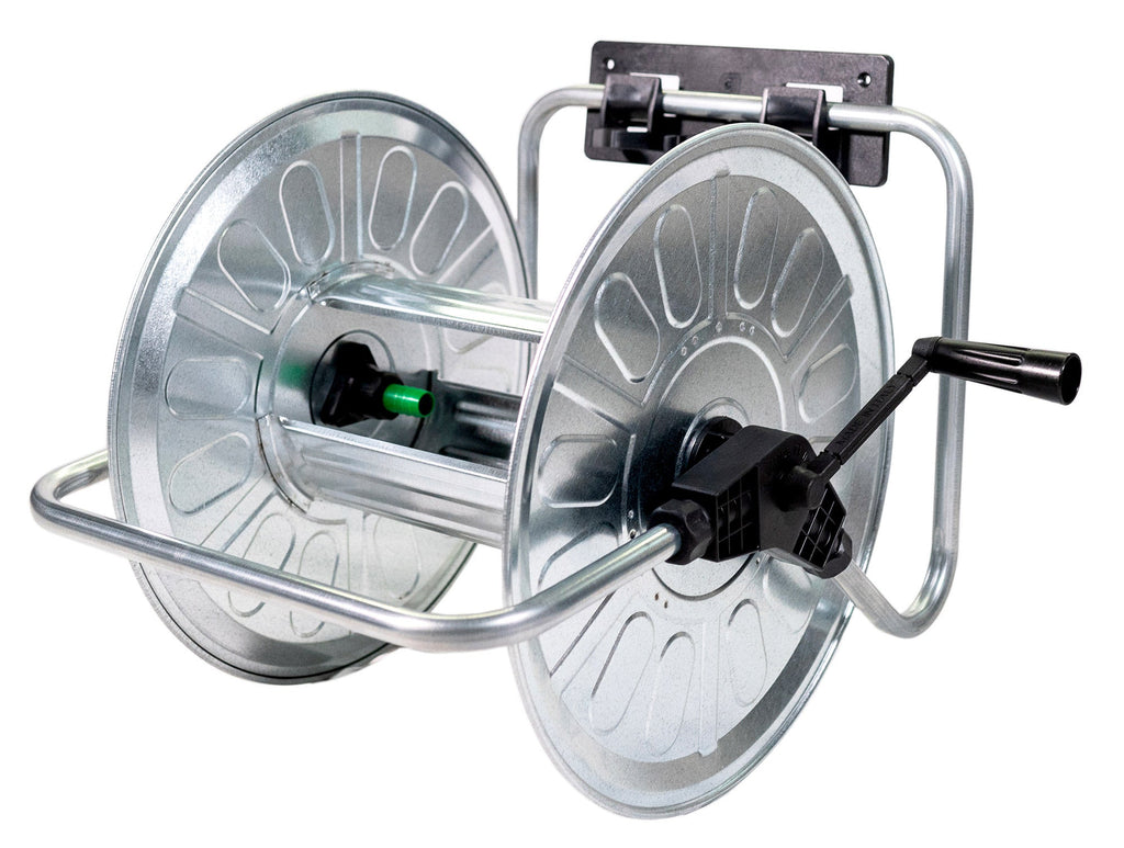Enrouleur de tuyau portable/mural, en acier galvanisé : peut accueillir jusqu'à 50 mètres de tuyau de diamètre. 3/4". Equipé de deux supports de tuyau (1 pivotant en laiton + 1 en polypropylène) pour tuyau de diamètre 3/4" : le passage de l'eau 3/4" est donc assuré sans goulots d'étranglement. Manche en acier recouvert de PP : il peut être retiré de l'enrouleur après utilisation pour réduire la taille de l'enrouleur de tuyau. Grâce au support spécial (inclus dans l'emballage), cet enrouleur de tuyau peut être appliqué au mur pour une utilisation dans un endroit fixe ; une fois retiré du support, ce Le modèle peut être utilisé comme enrouleur de tuyau portable. Vis/chevilles pour fixer le support au mur non incluses. Montage rapide et facile de l'enrouleur de tuyau, sans utiliser d'outils.