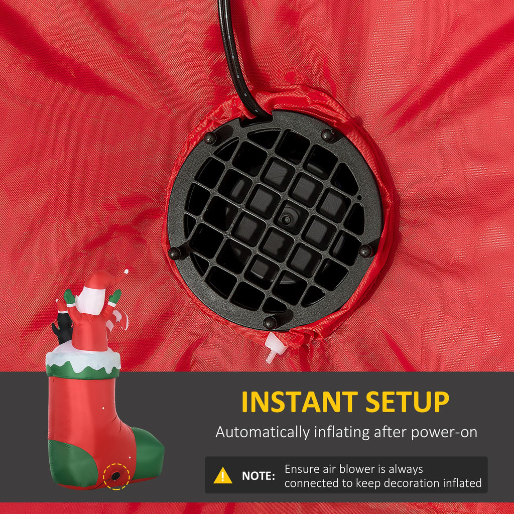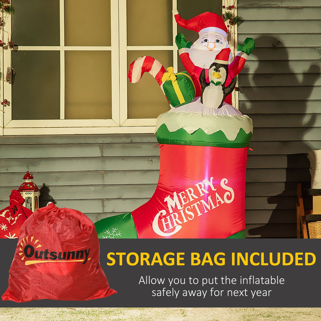 Père Noël gonflable 90x50x149 cm avec bas de Noël pingouin et lumières LED