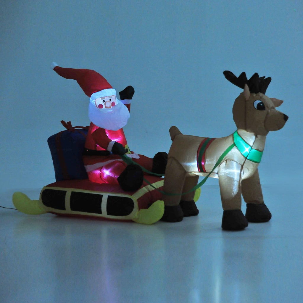 Gonflable en forme de Père Noël avec renne, adapté pour une utilisation intérieure et extérieure.Fabriqué en polyester durable et résistant pour une utilisation durable.