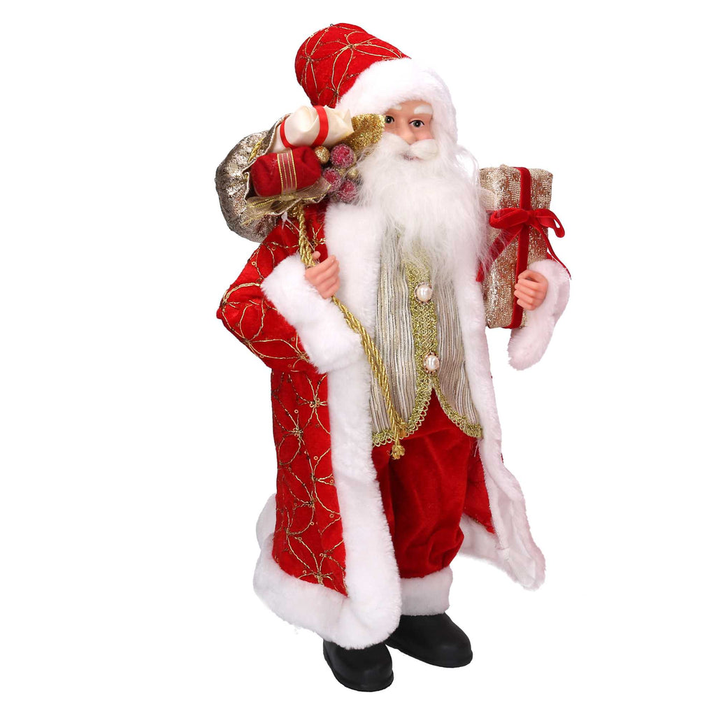 Babbo natale in tessuto rosso e oro con regali cm xh45