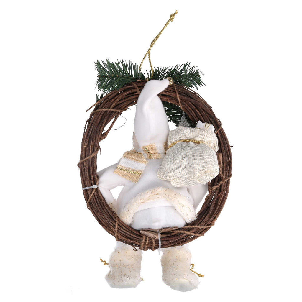 - Babbo natale in tessuto su ghirlanda bianco e oro