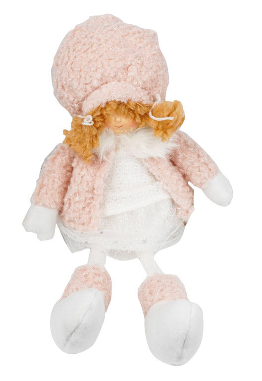 Bambolina Natalizia H59 cm in Tessuto Rosa