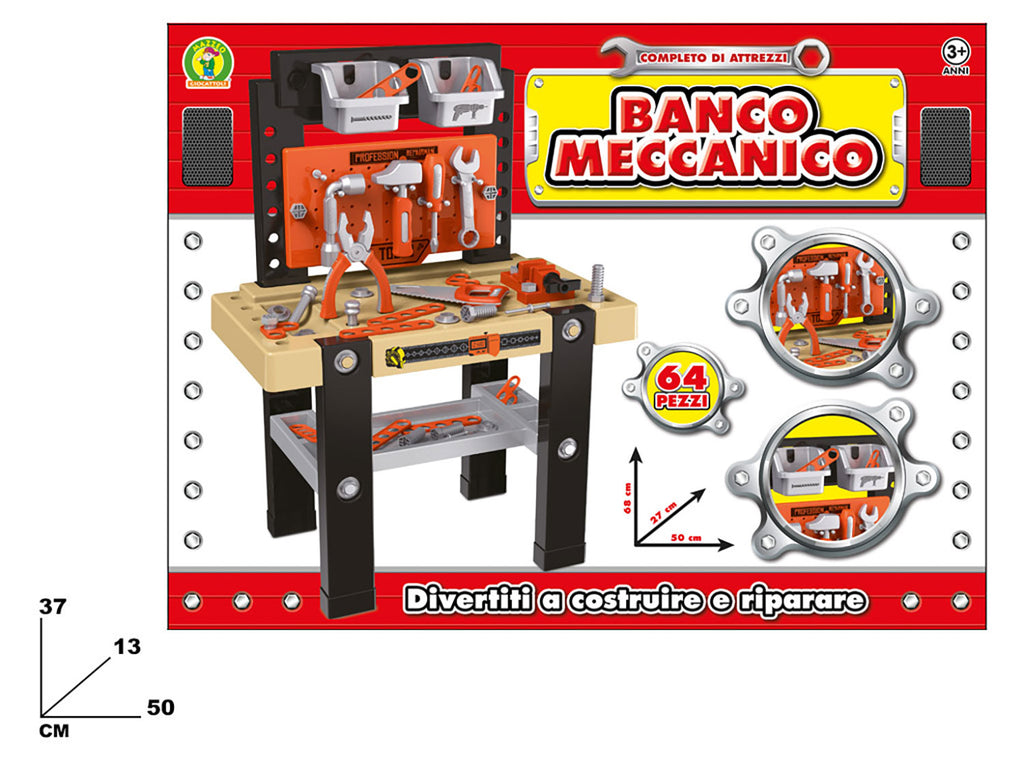Questo banchetto è dotato di una solida base per appoggiare tutti gli attrezzi, mantenendo l'area di gioco ordinata e organizzata. I 64 accessori inclusi, come pinza, chiave inglese, martelletto e bulloni, sono pensati per stimolare l'immaginazione e permettere ai bambini di inventare sempre nuovi lavori e riparazioni. Realizzato con materiali resistenti e sicuri, il banchetto da lavoro è progettato per durare nel tempo e garantire un divertimento senza fine.