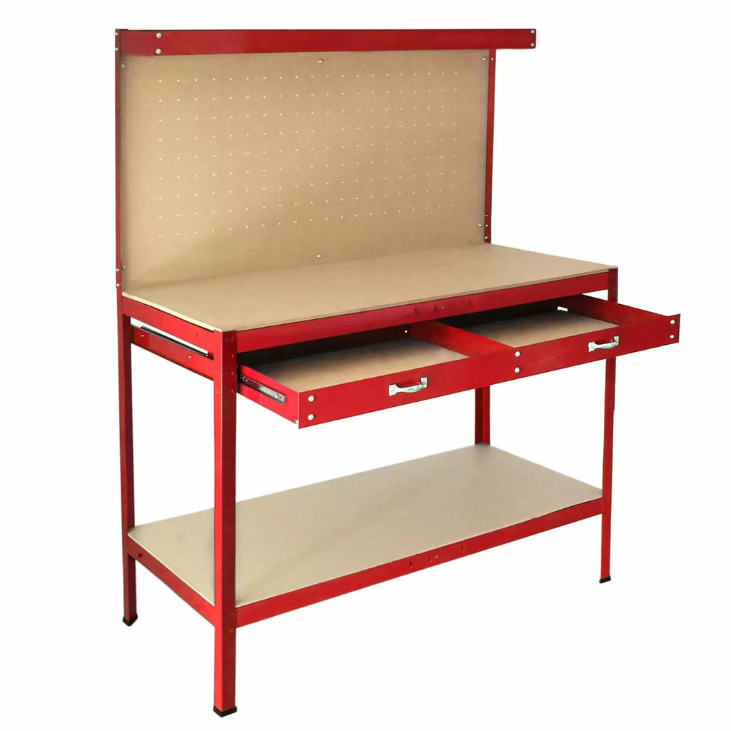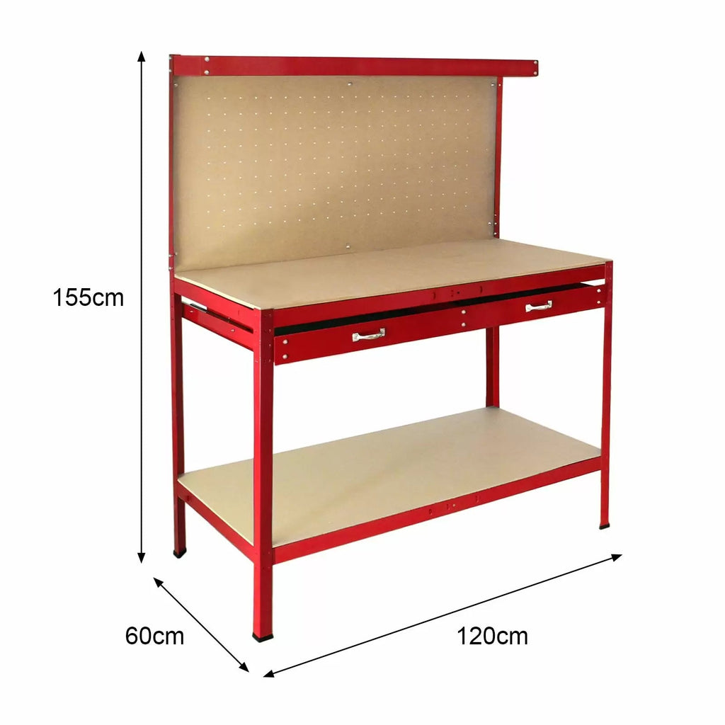 Etabli porte-outils 120 cm en acier avec mur et tiroir rouge