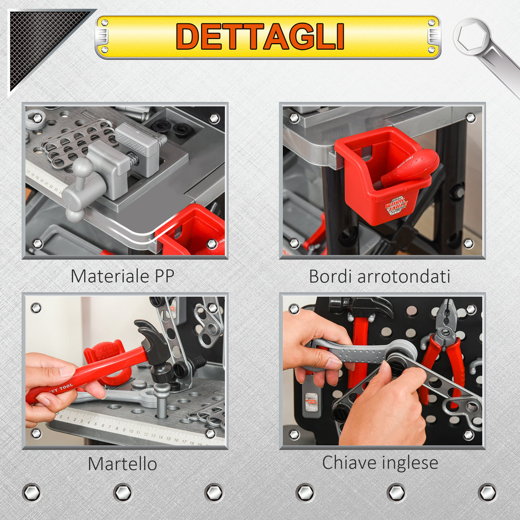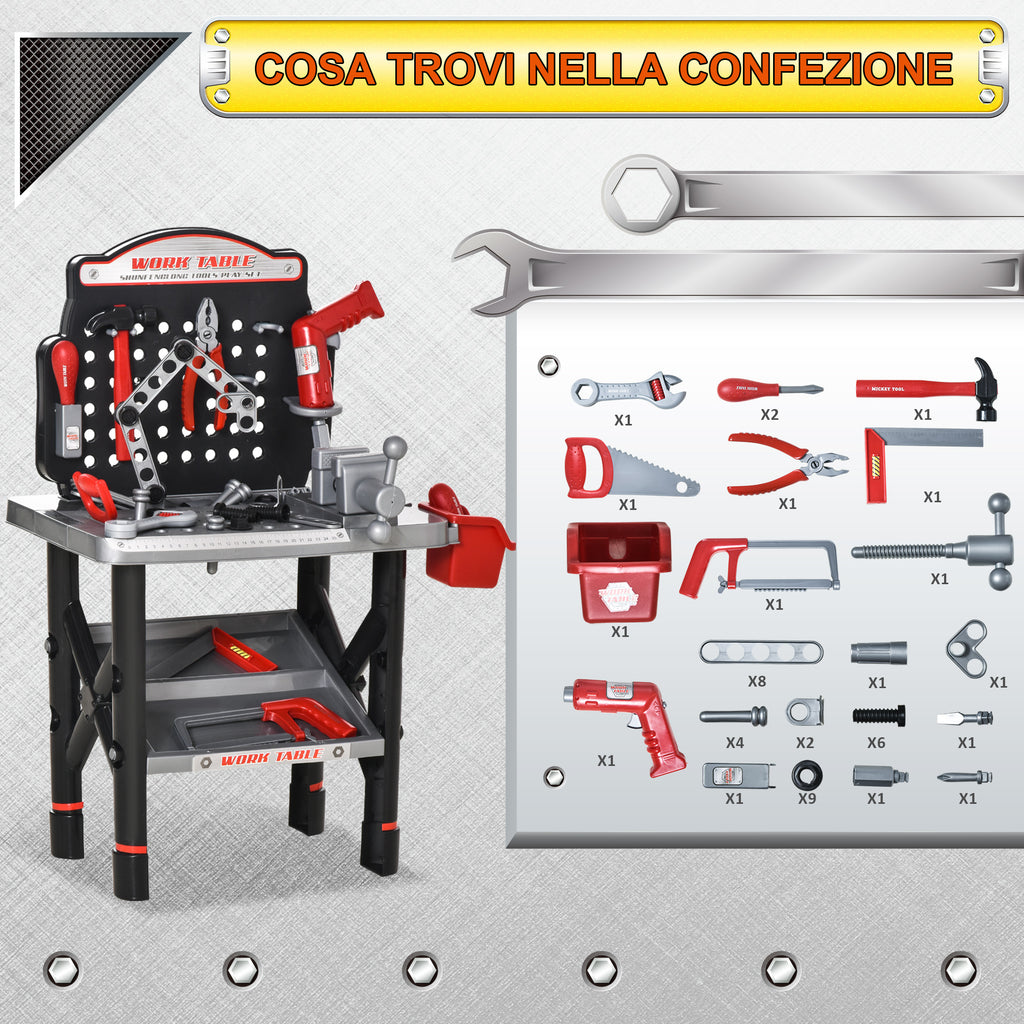Établi avec 50 outils pour enfants noirs et gris