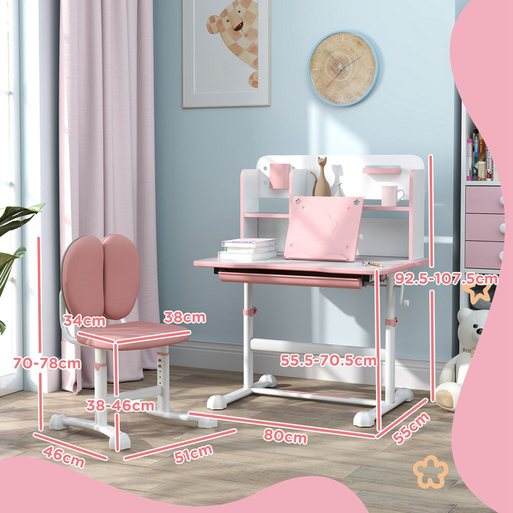 Banco Scuola per Bambini con Piano Inclinabile con Sedia Altezza Regolabile Bianco e Rosa