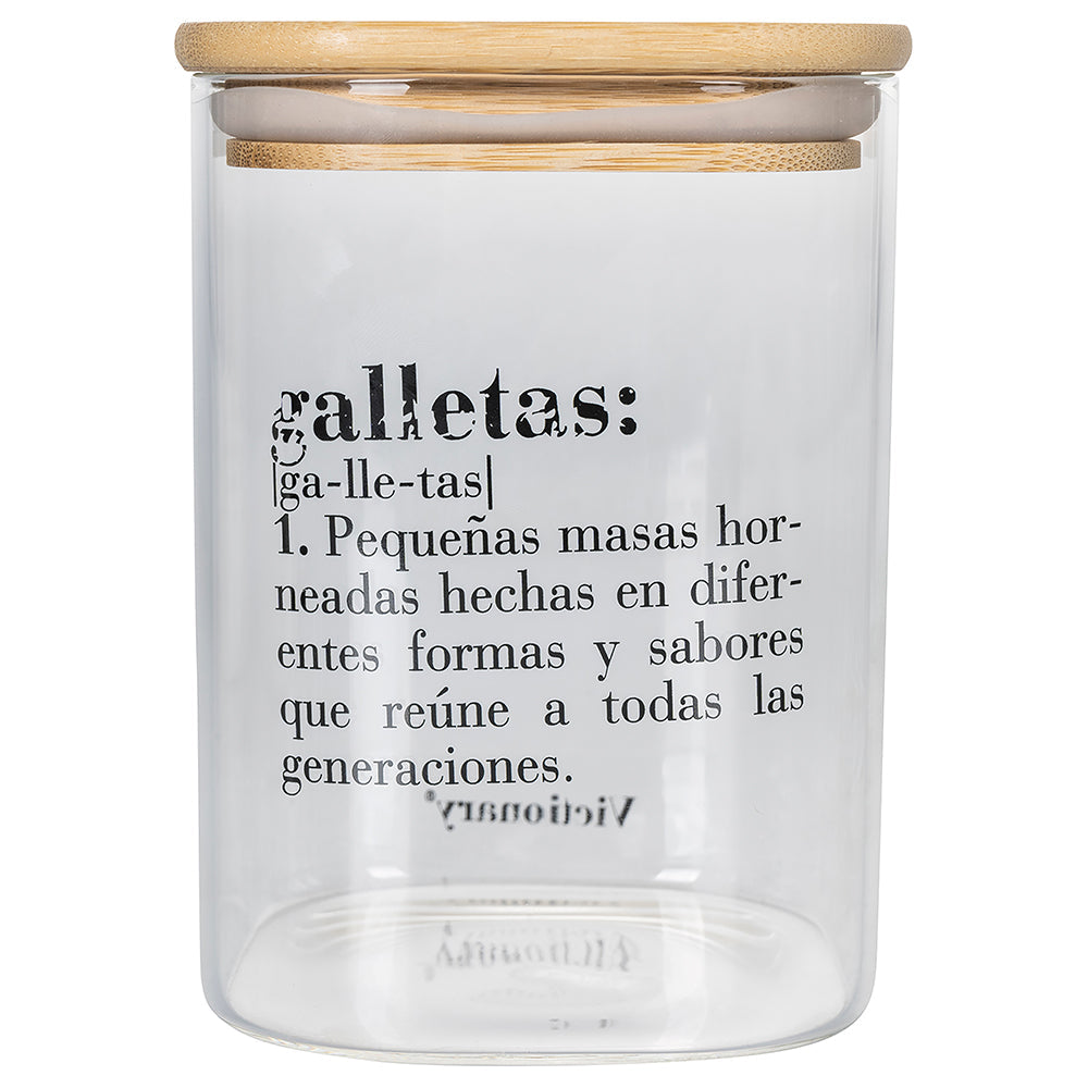Pot à Biscuits avec écriture "Galletas" 1 Litre en Verre VdE Tivoli 1996 Victionnaire Espagnol