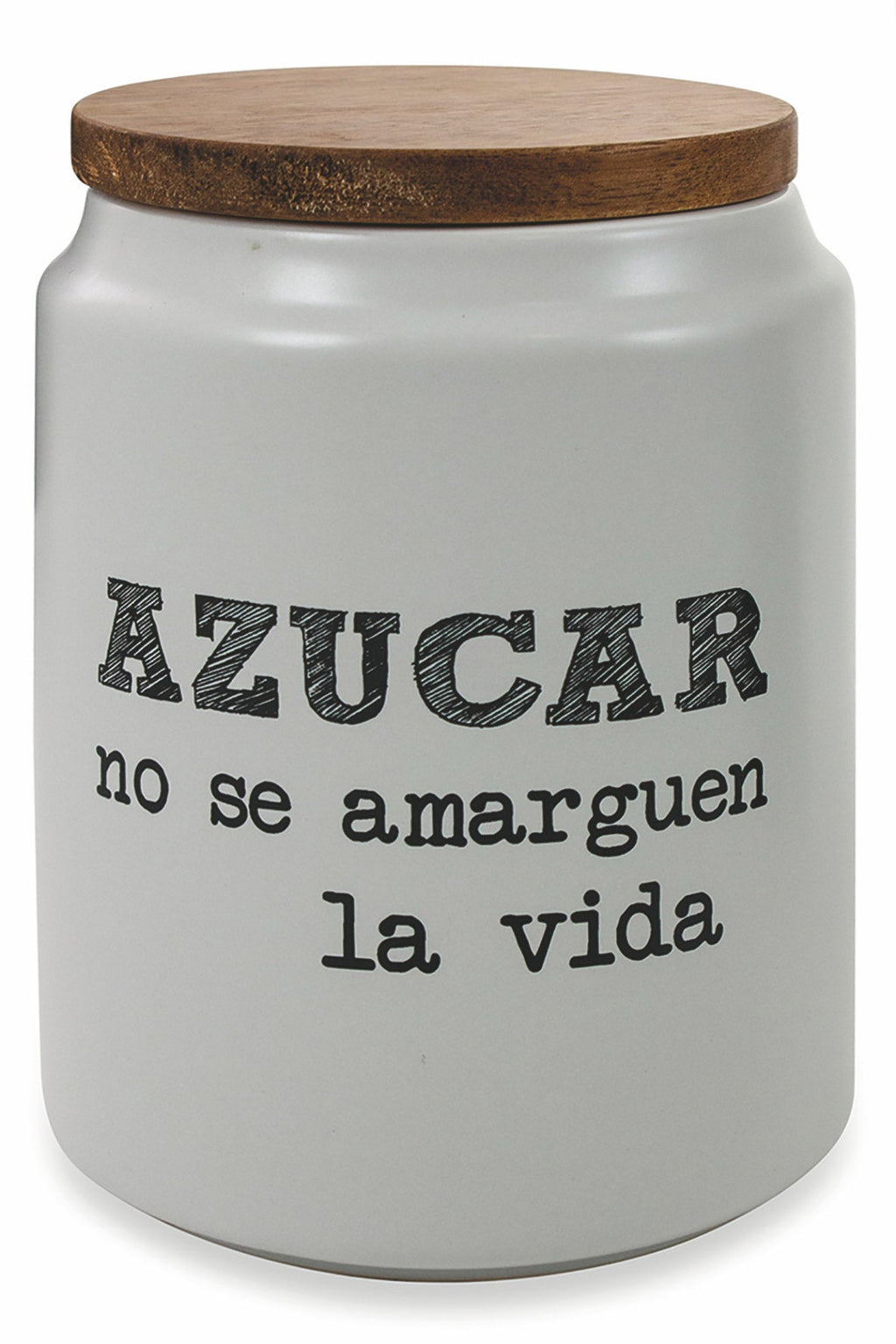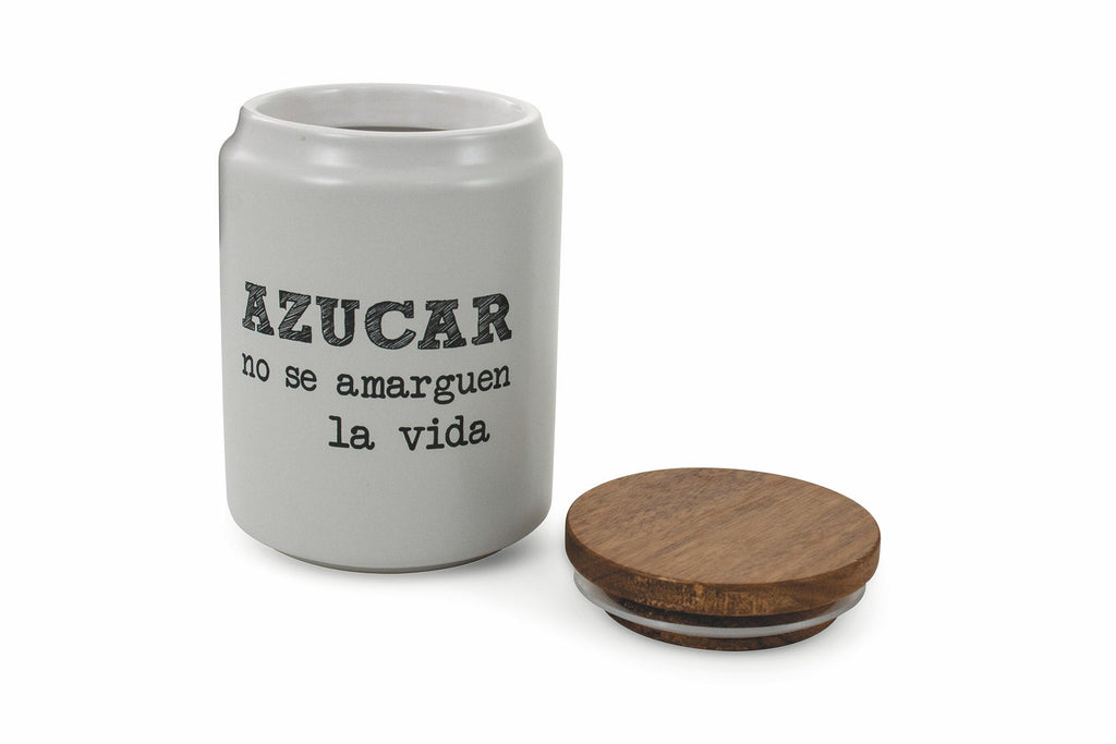 Pot à sucre en grès avec écriture Ø10,5x15 cm avec couvercle en bambou Villa d'Este Home Tivoli