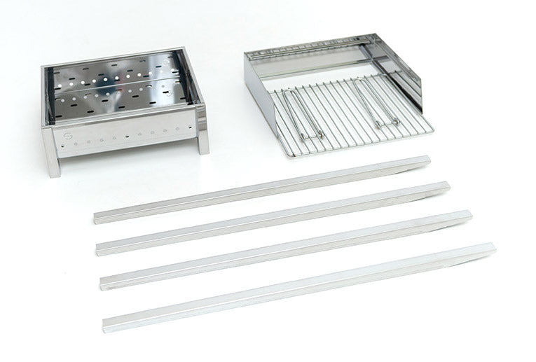 Équipé d'un double fond pour favoriser la circulation de l'air et faciliter l'élimination des cendres, il dispose d'une surface de cuisson de 1036 cm², un espace plus petit que le Stromboli 60x40, mais qui améliore la capacité de transport.
