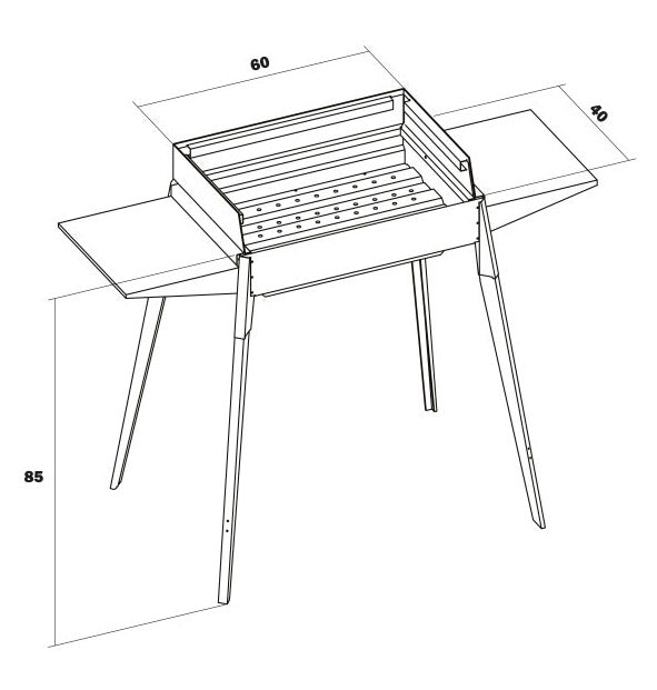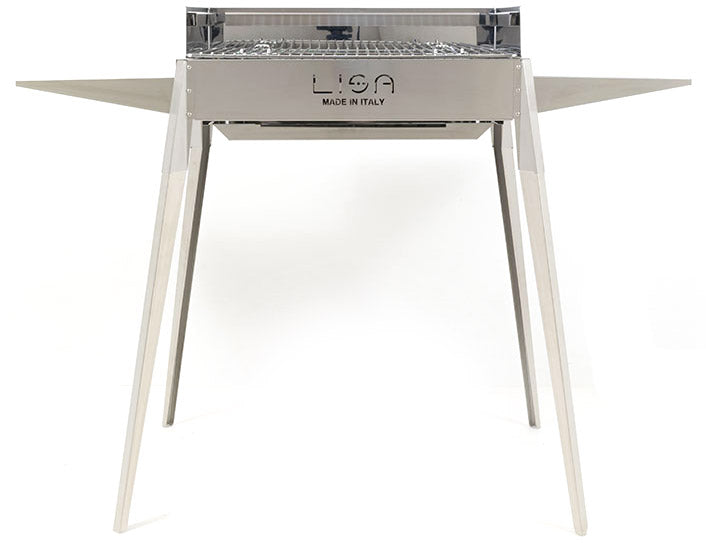 Barbecue à charbon caractérisé par un design raffiné et élégant et aussi par la facilité de montage et de démontage, grâce aux pieds caractéristiques à baïonnette.