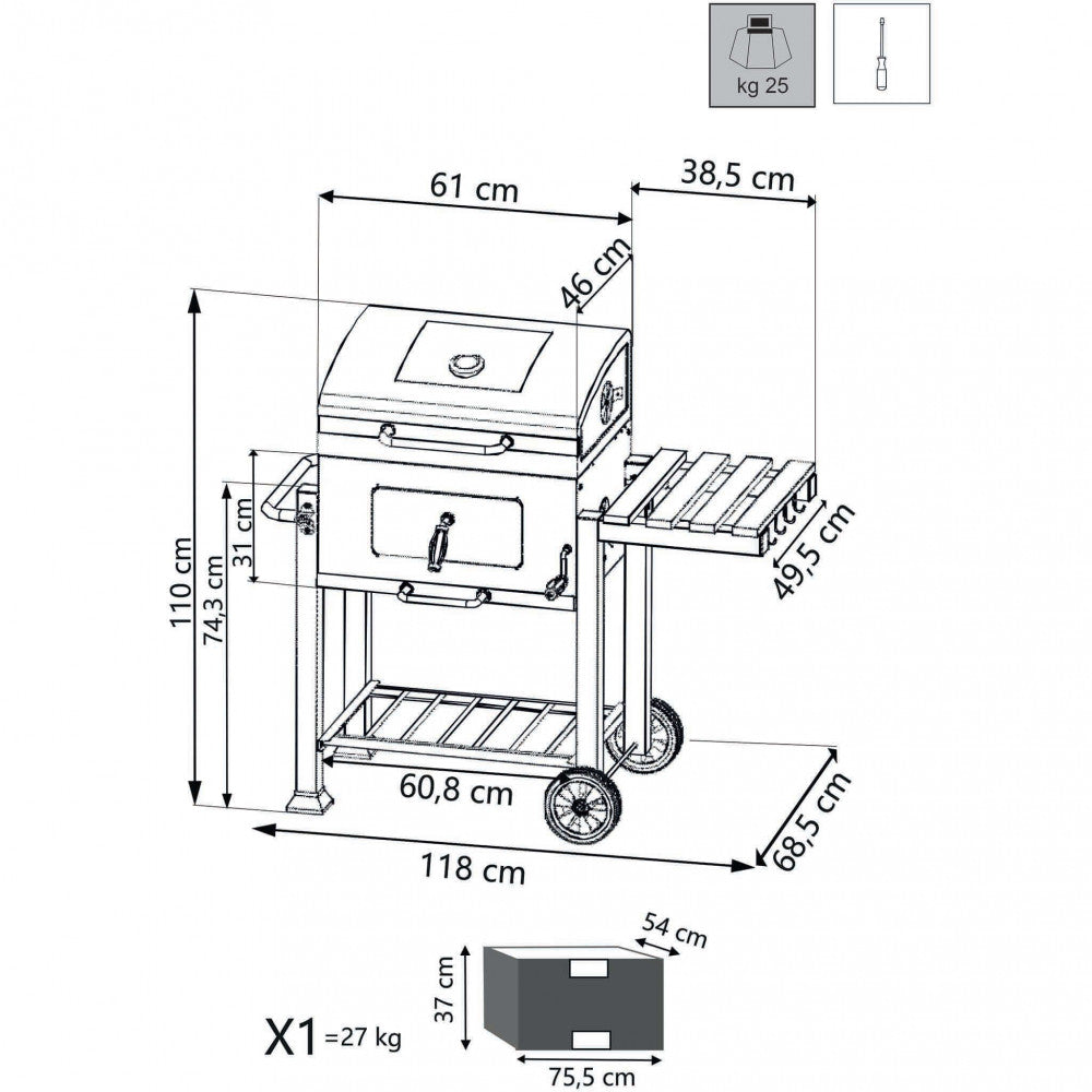 Barbecue à Charbon 118x56x110 h cm en Acier Anthracite