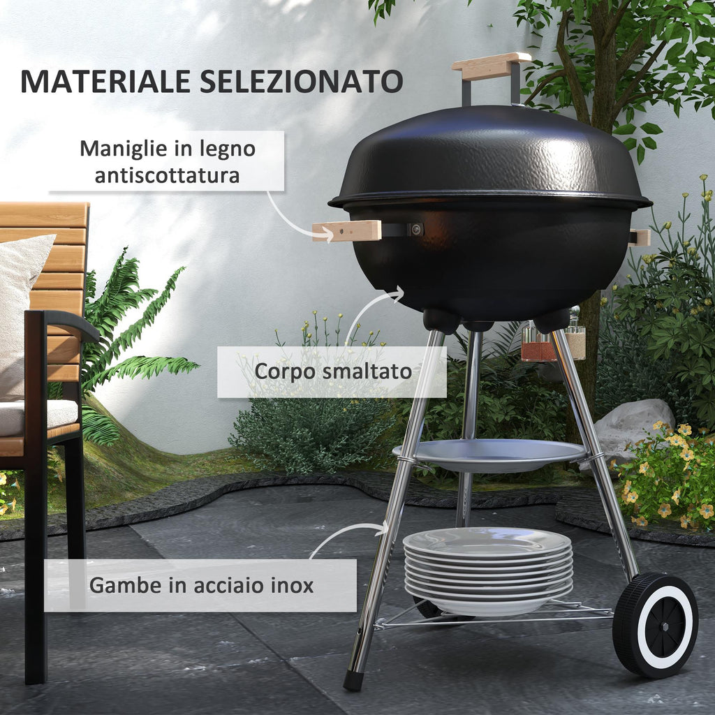 Barbecue a Carbonella con Griglia in Acciaio Coperchio e Prese d'Aria e Ruote Nero
