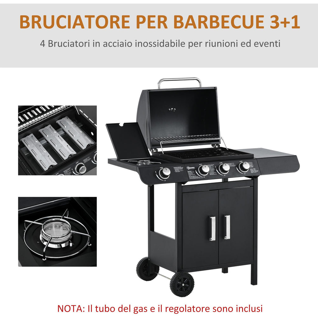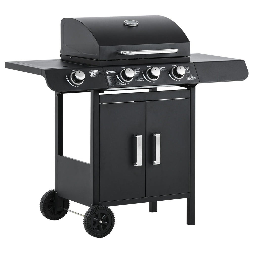 Barbecue à Gaz 4 Feux 110x50x100 cm en Métal Noir