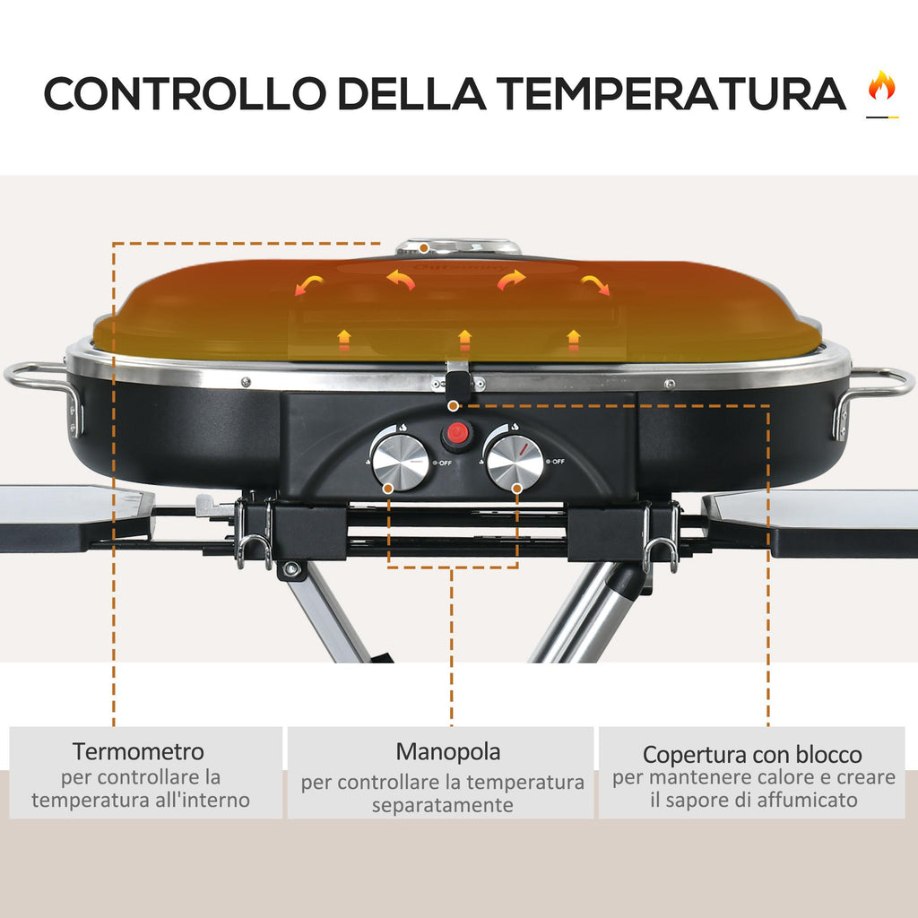 Barbecue à gaz GPL 2 brûleurs 100x41,6x82,5 en alliage d'aluminium et acier noir