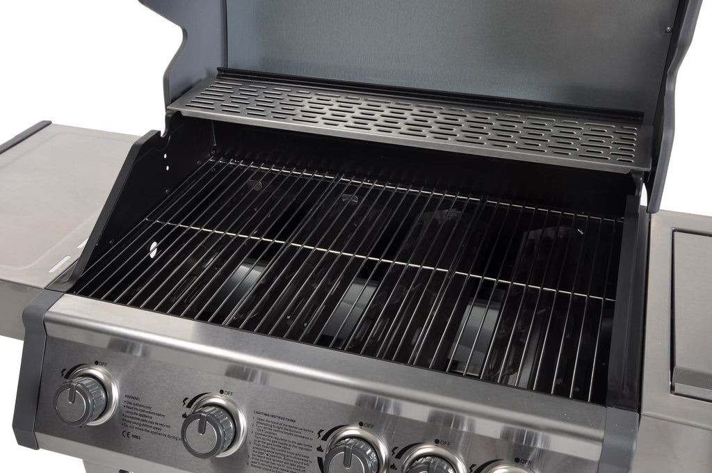 - Barbecue à gaz avec 4 brûleurs de 3,0 kW + 1 brûleur latéral de 2,5 kW