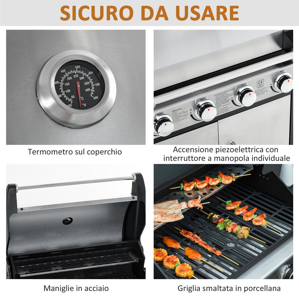 Barbecue à gaz GPL 4 brûleurs 3kW avec brûleur latéral en acier