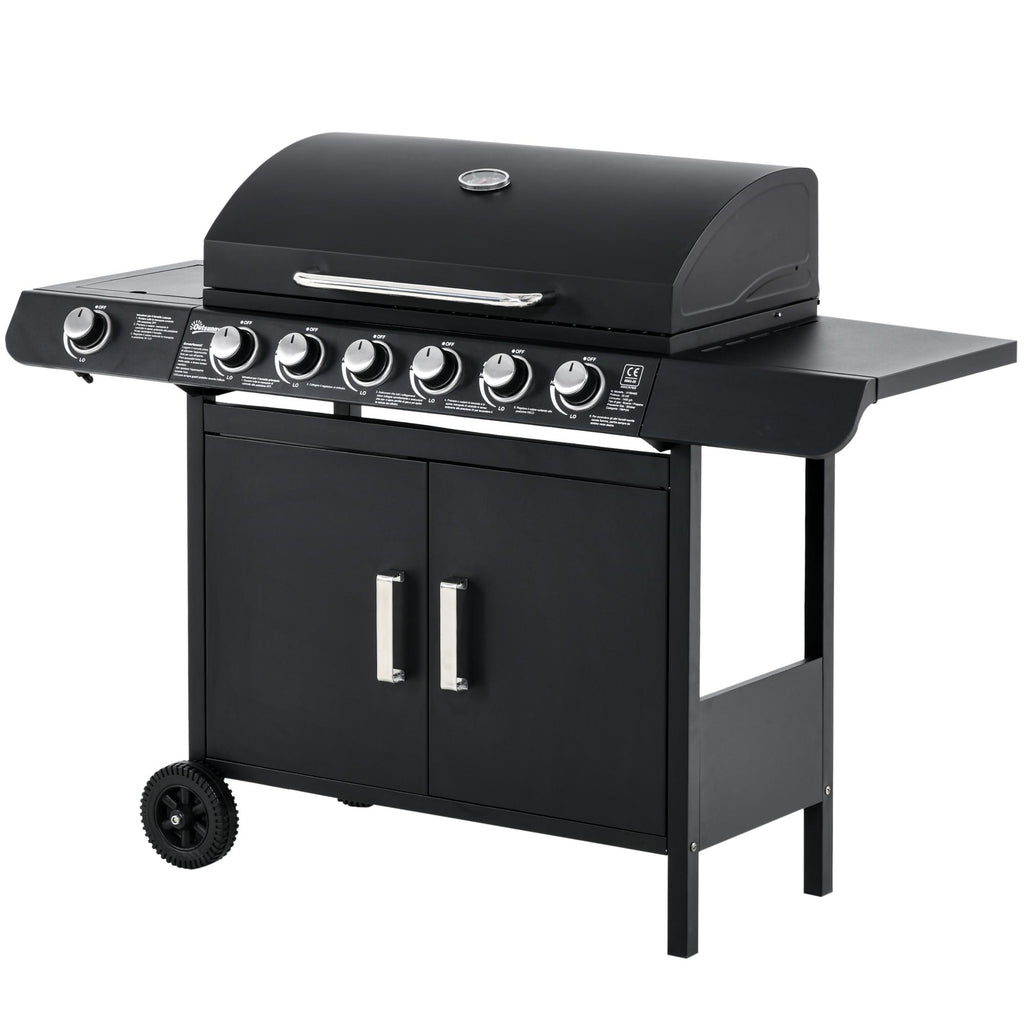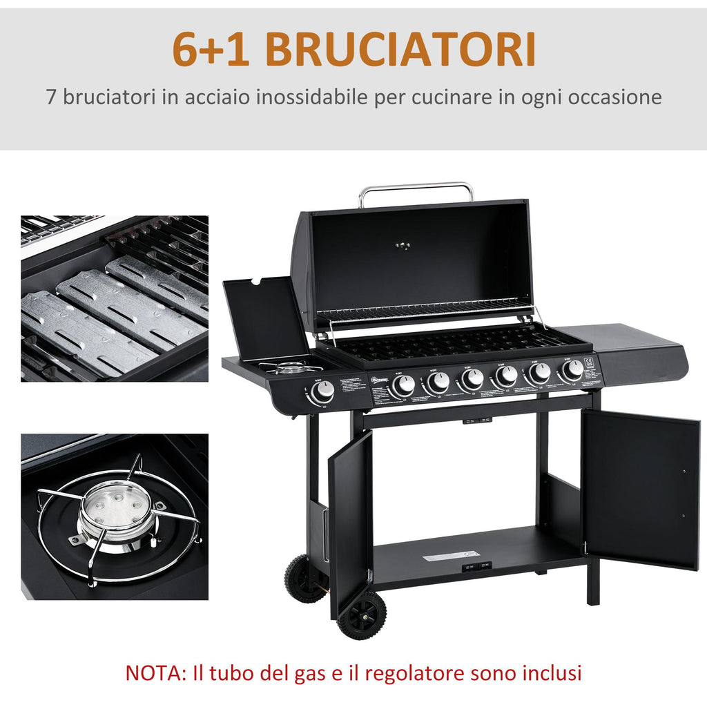 Barbecue à gaz GPL 7 brûleurs 135x50x100 cm avec brûleur latéral noir