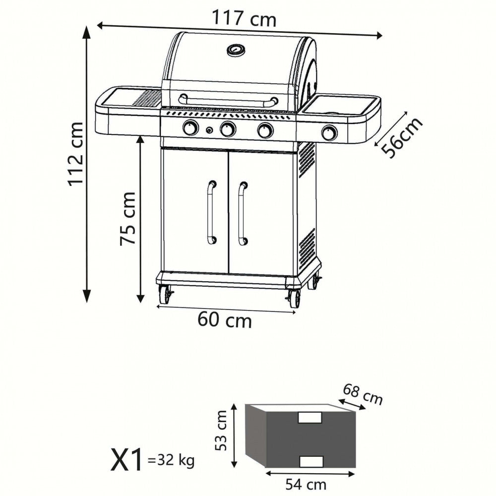 Barbecue à gaz Davis LPG 3 brûleurs + 1 avec brûleur latéral 117x55,5x112 h cm en acier gris