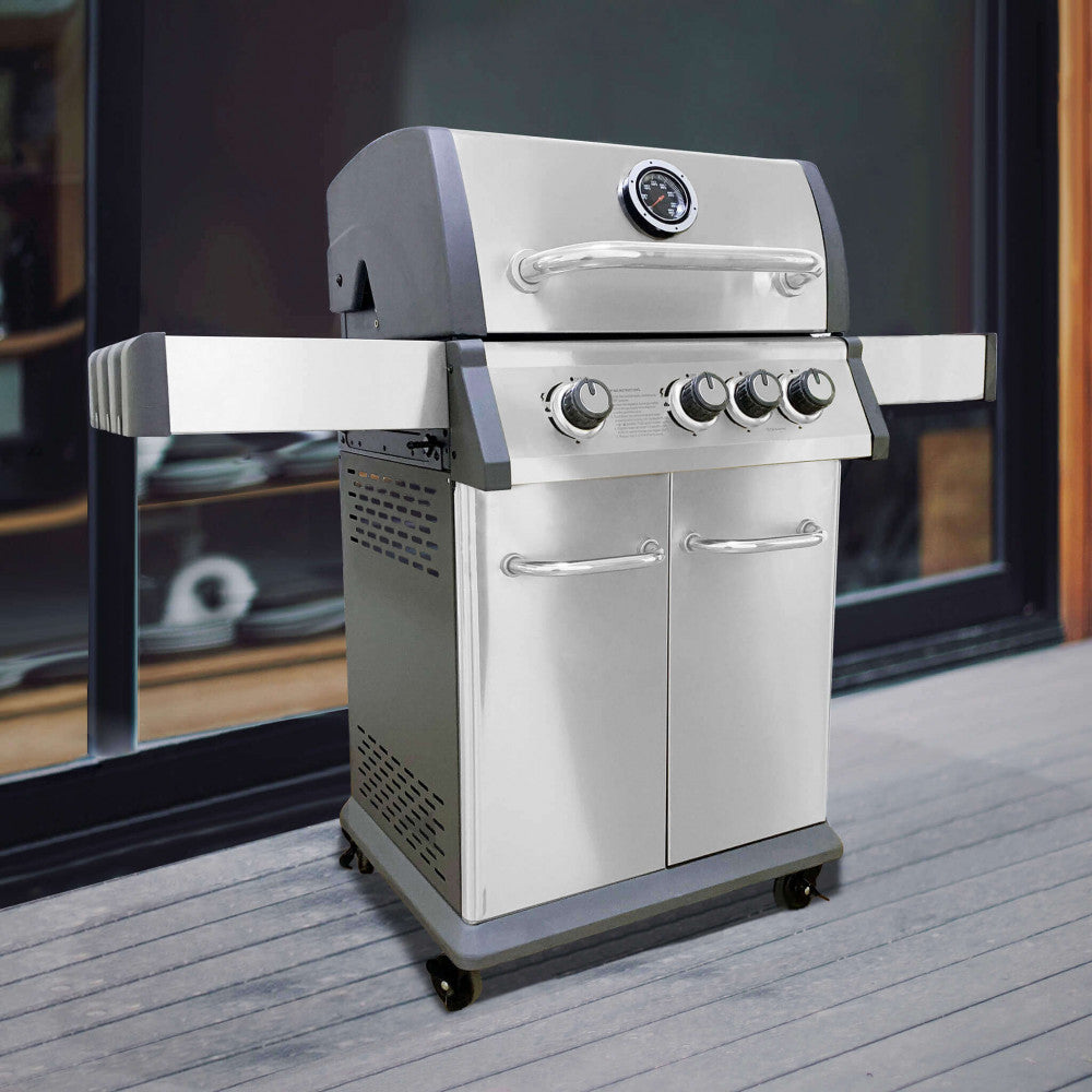 Barbecue à Gaz GPL Montana 3 Feux + 1 avec Brûleur Latéral 120x57x114 h cm en Acier Gris