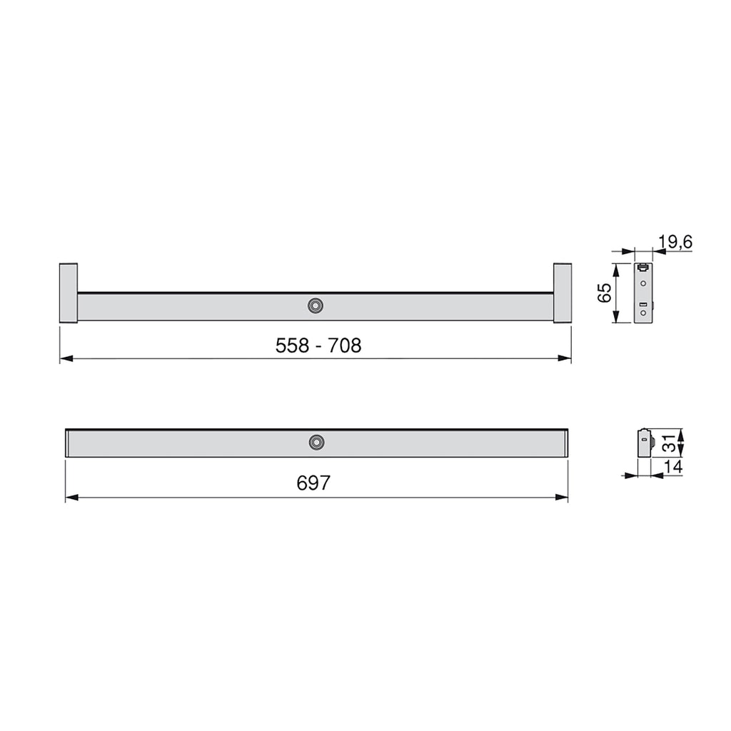 Barre de suspension pour armoire 55,8-70,8 cm 12V avec LED blanc naturel et détecteur de mouvement Emuca