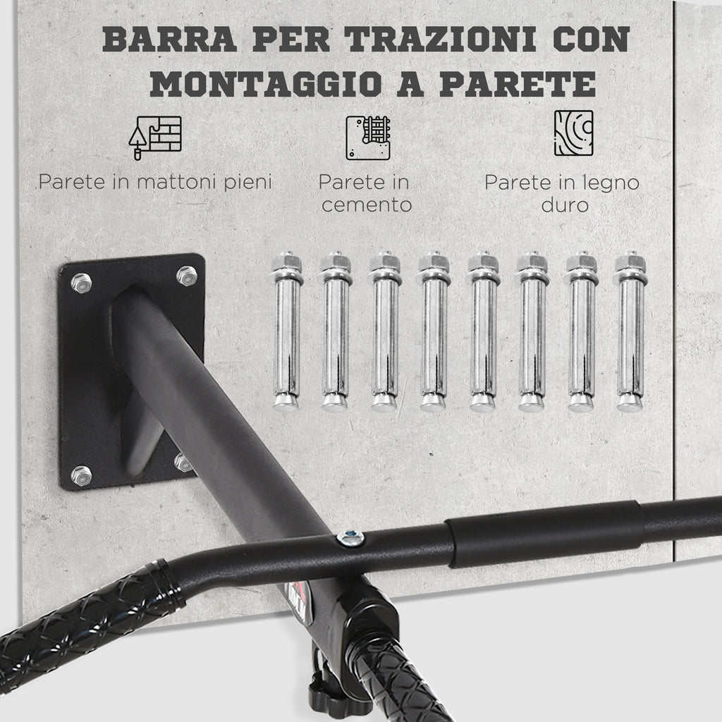 - STRUTTURA ROBUSTA: Realizzata in acciaio di alta qualità, la nostra barra trazioni da parete è progettata per risparmiare spazio a terra. Inoltre, è dotata di impugnature comode, viti di qualità superiore, travi rinforzate e una struttura di supporto triangolare, in modo da garantirti così un livello di sicurezza e comfort ottimali