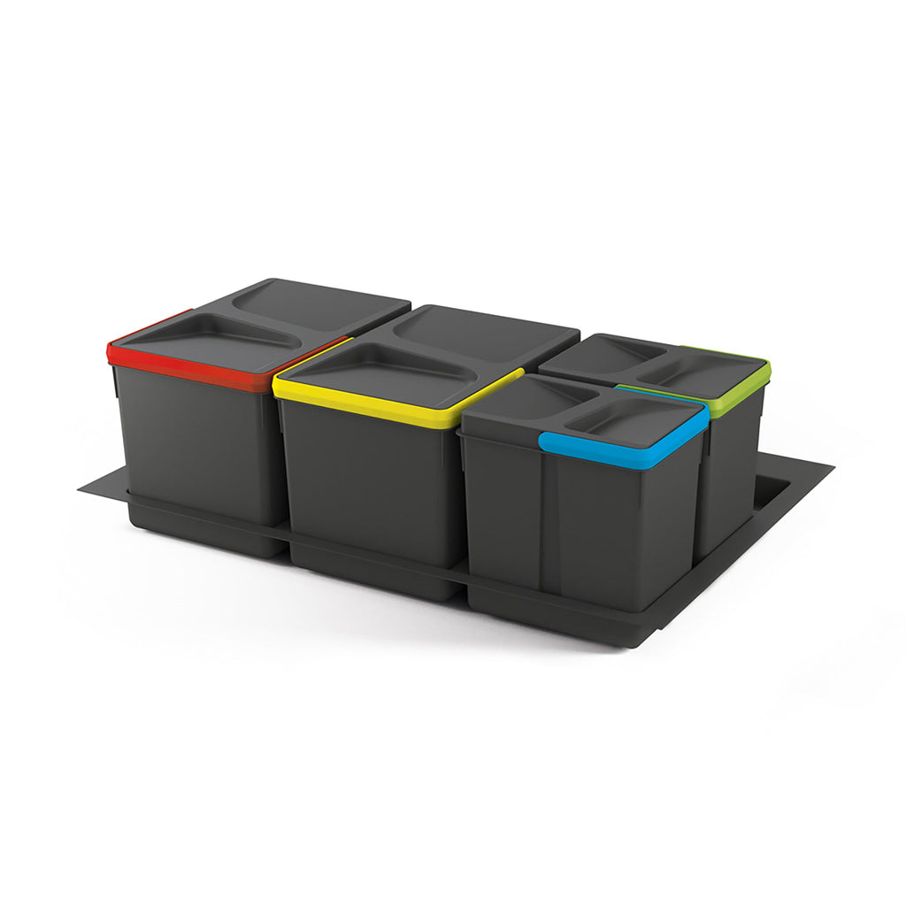 Meuble bas 3 places pour poubelle séparée pour tiroirs de cuisine 80 cm en plastique gris Emuca
