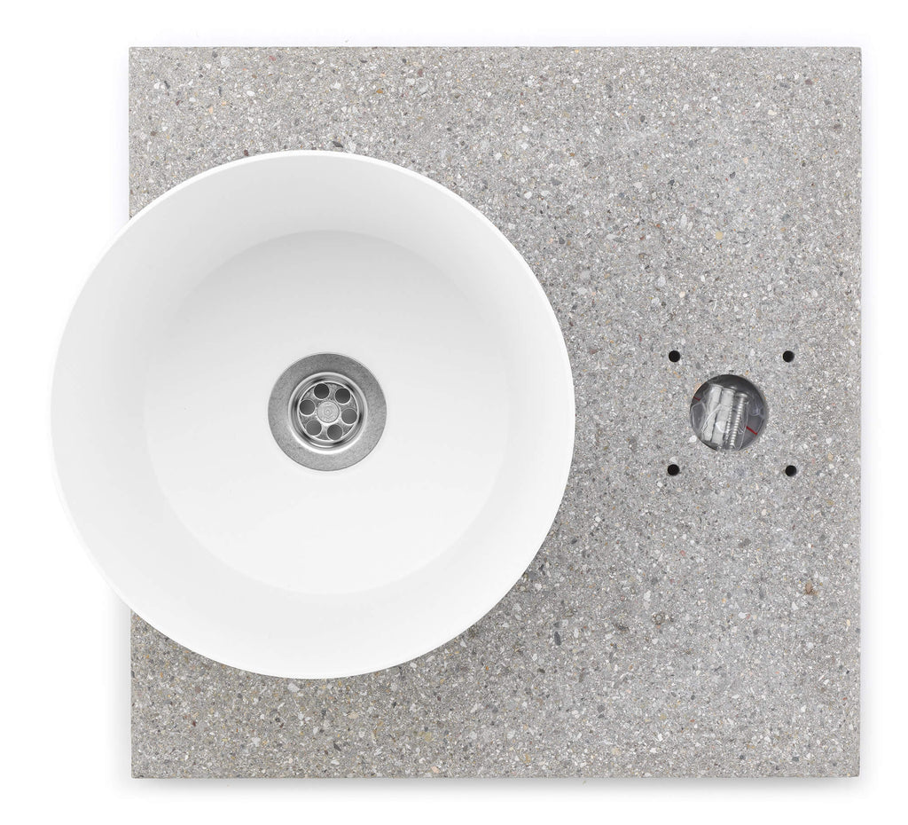 Base en granulats de ciment avec plateau peint avec drain. Pour fontaines avec petit anneau. Complet avec vis et chevilles.