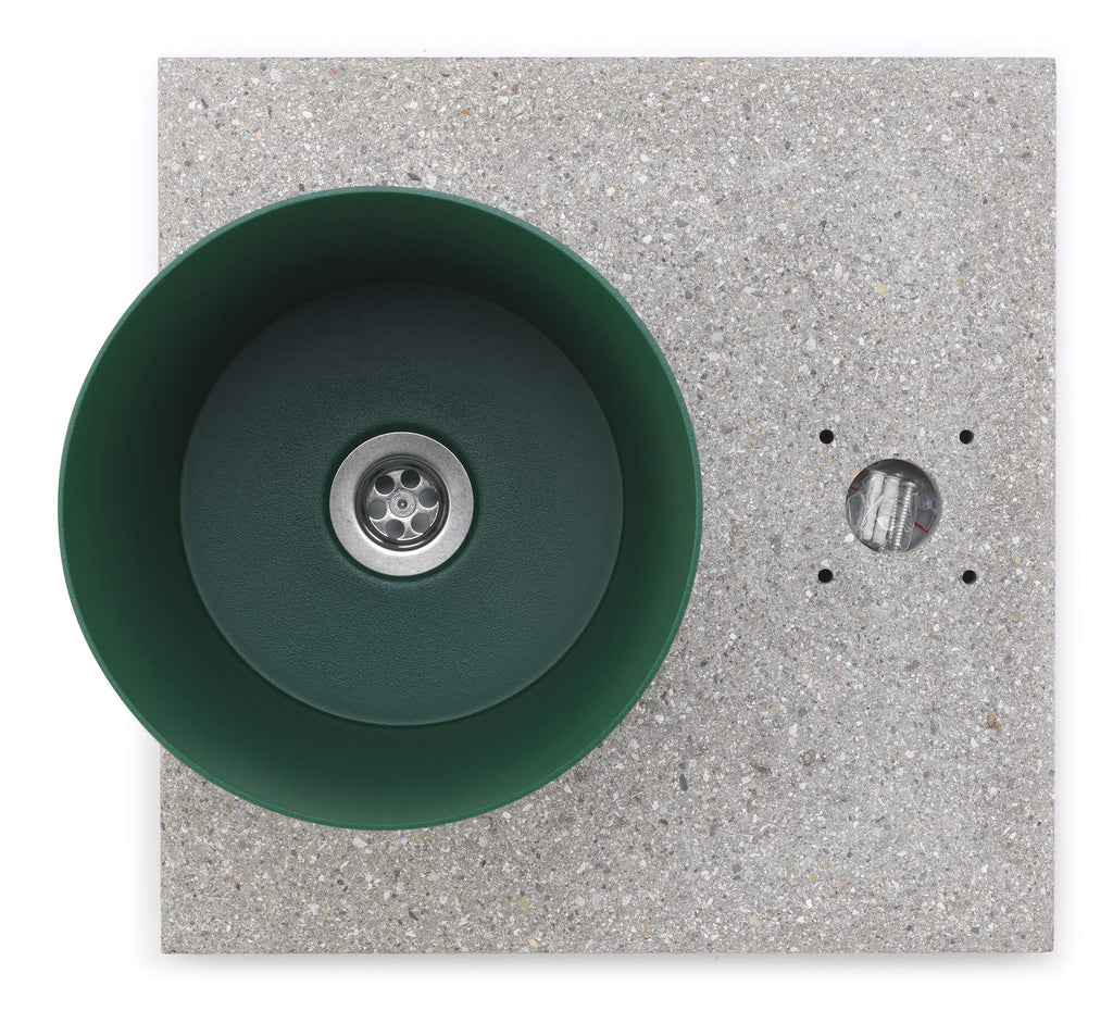 Base en granulats de ciment avec plateau peint avec drain. Pour fontaines avec petit anneau. Complet avec vis et chevilles.