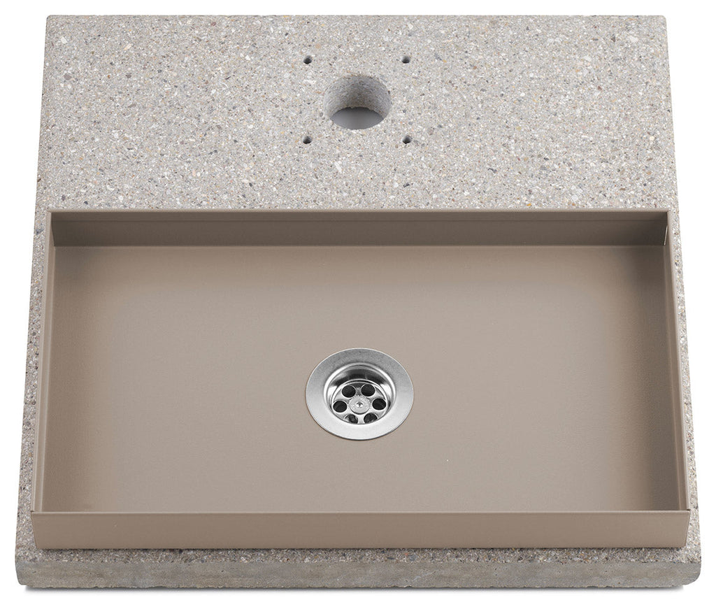Base en granulats de ciment avec récipient en métal peint pour remplir les galets (non fourni).