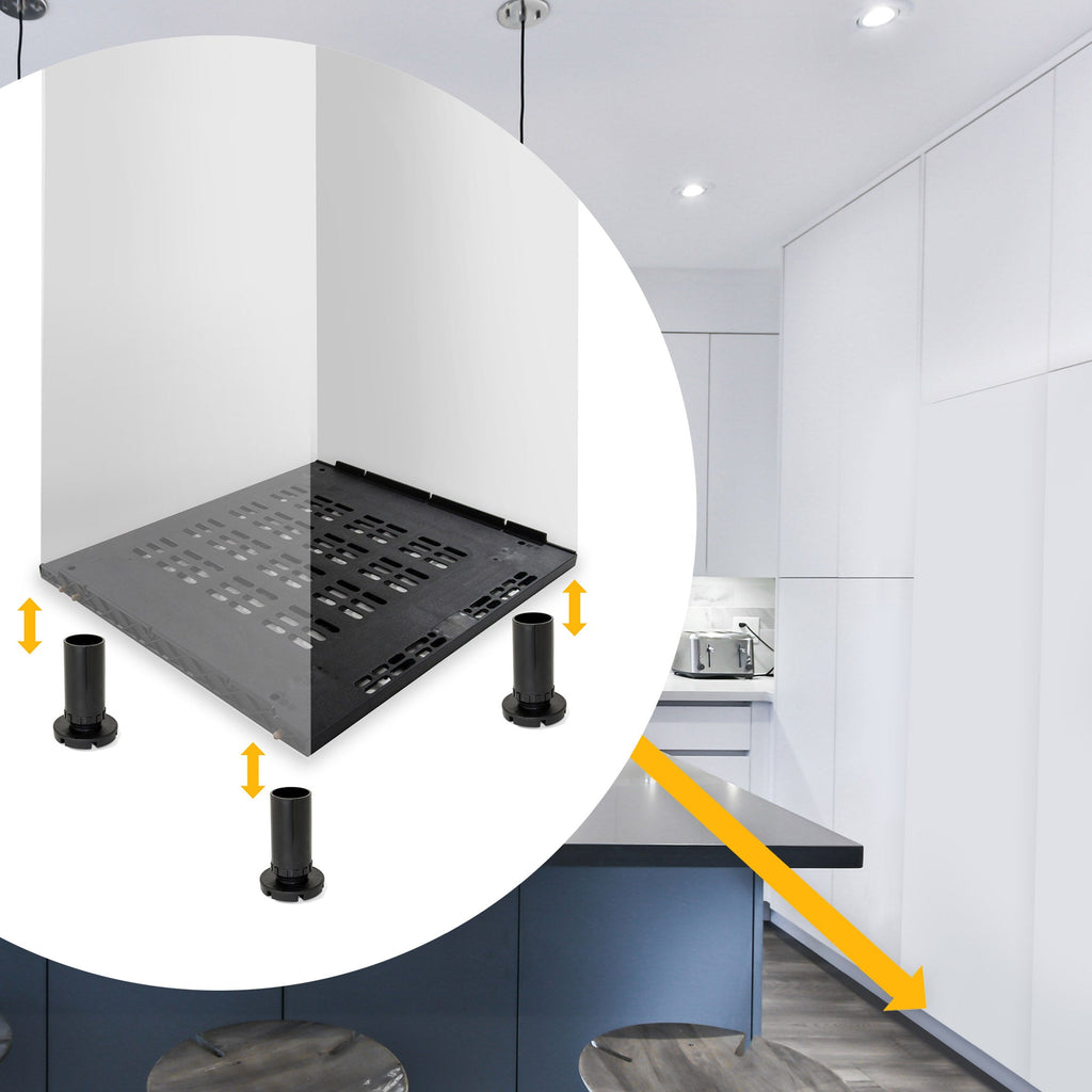 La base de ventilation Frigo pour modules de 60 cm de large est conçue pour la ventilation des réfrigérateurs encastrables dans les meubles de cuisine. Il est perforé pour une ventilation optimale du réfrigérateur et possède des trous pour la fixation des pieds de la cuisine. Il est également dimensionné pour des épaisseurs d'étagère de 16 mm et intègre des bouchons pour l'assemblage au module.