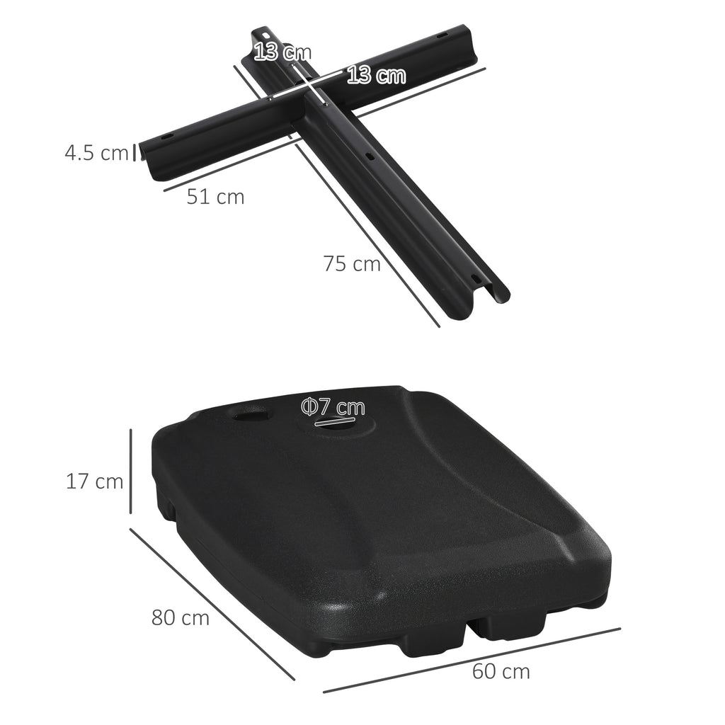 Base per Ombrellone 80x60x17 cm Riempibile fino a 75 kg con Base a T Inclusa Nero