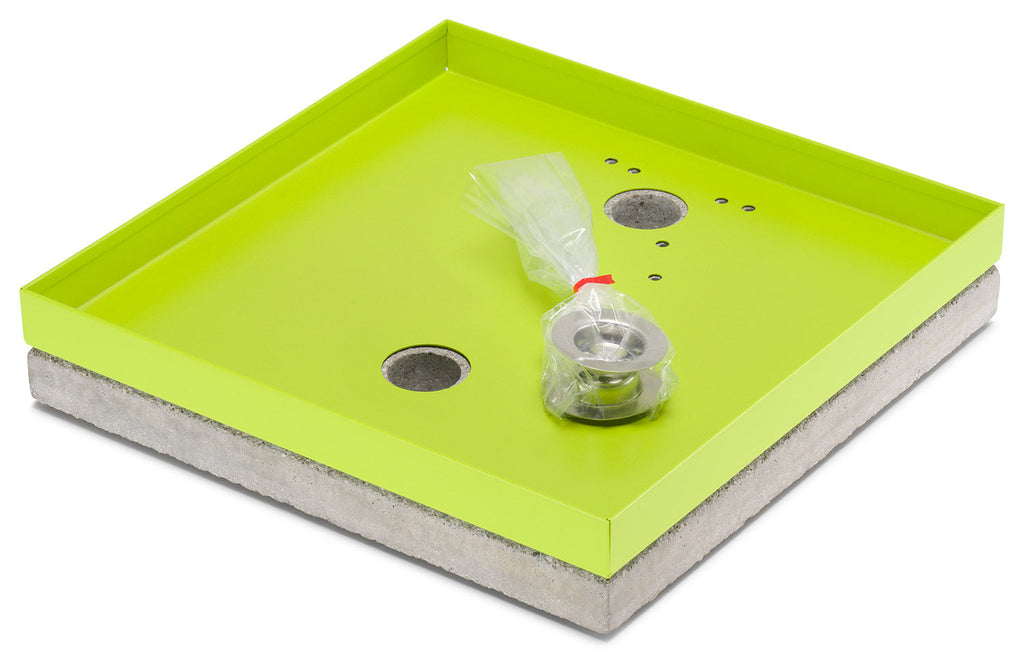 Base Portaciottolo per Fontane 40x40x8 cm in Metallo con Base in Cemento Belfer 42/BSE/10 Verde Acido