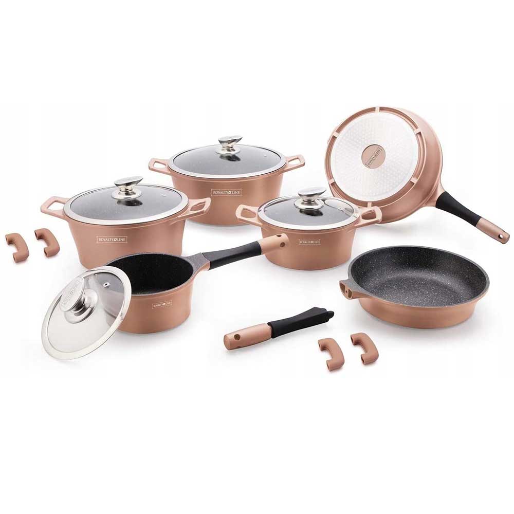 - Set di pentole in alluminio pressofuso da 14 pezzi rivestito in marmo