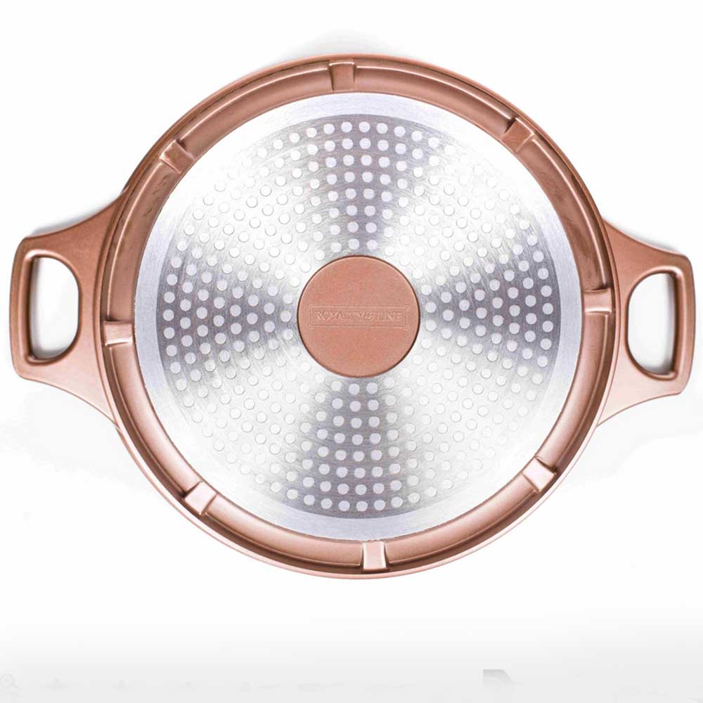 - 1x Batterie Pentole e Padelle da Cucina 14 Pezzi Antiaderente In Pietra Lavica Coperchio in Vetro Clip Maniglie Rimovibili Colore Rame