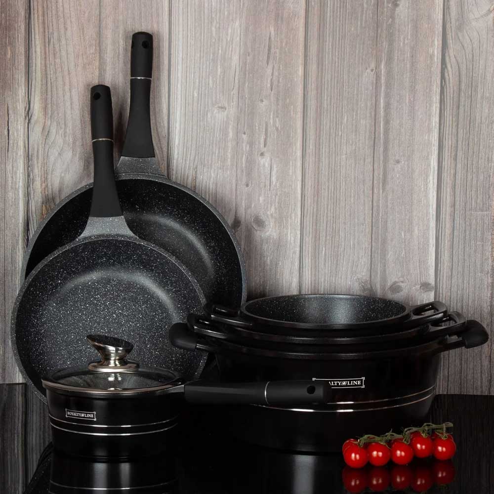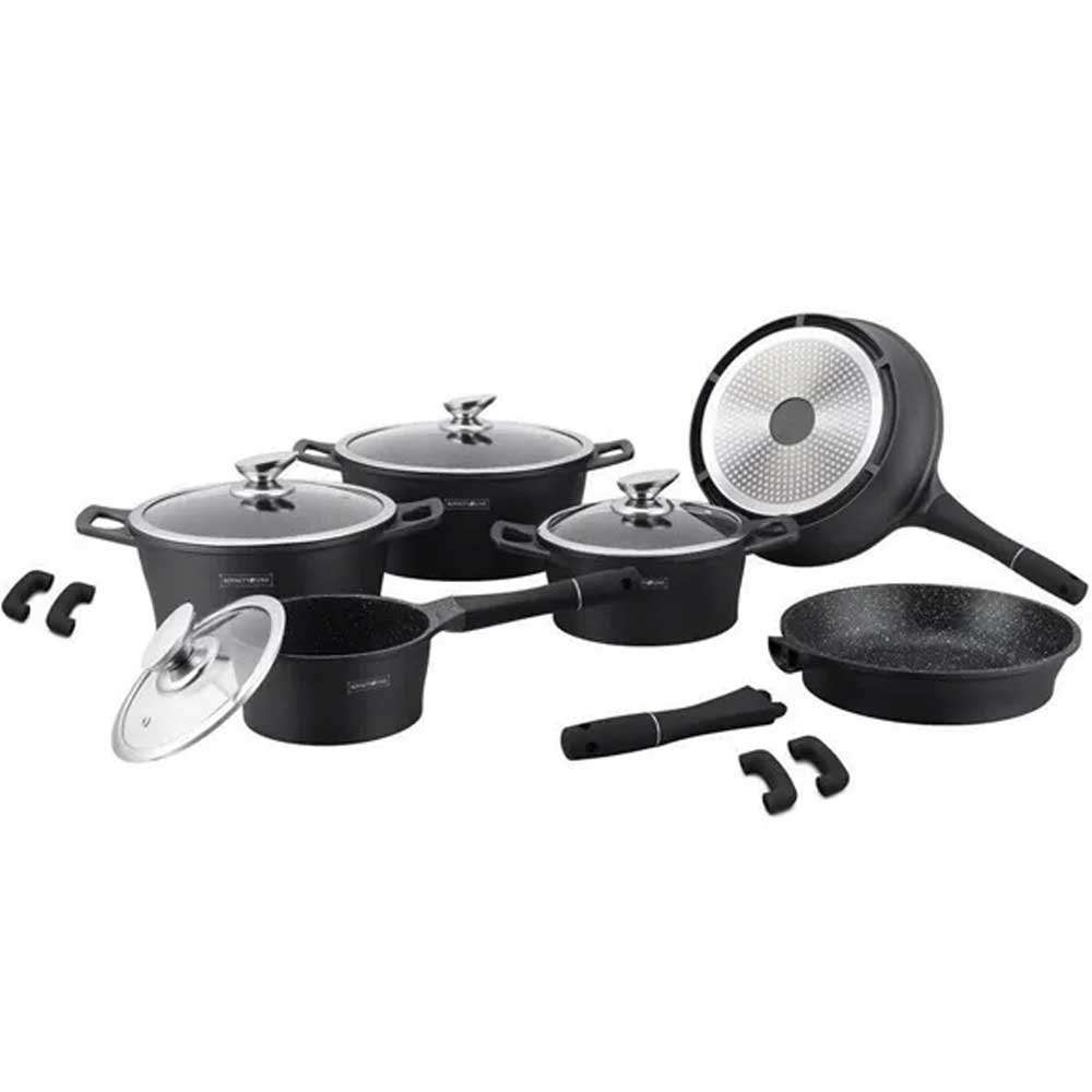 • Set di pentole in alluminio pressofuso da 14 pezzi rivestito in marmo