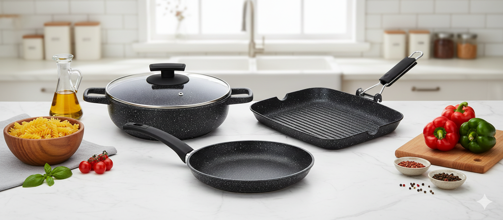 Batterie de cuisine antiadhésive 4 pièces en aluminium moulé sous pression Olympia Hard Cook