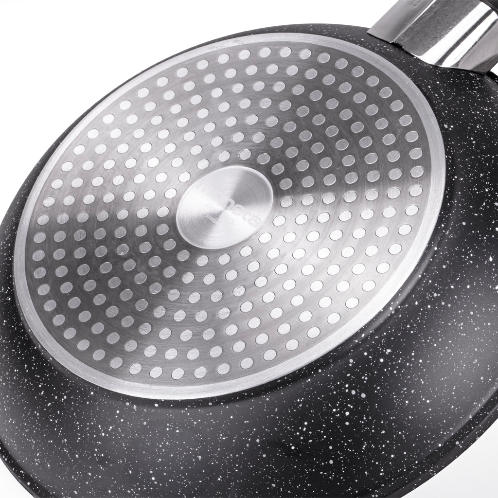 Batteria di Pentole 5 Pezzi Antiaderente Induzione in Alluminio Effetto Pietra Moneta Magnolia Stone Black