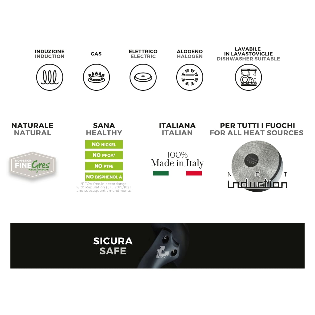 - Adatto a tutti i piani di cottura inclusa l’INDUZIONE.