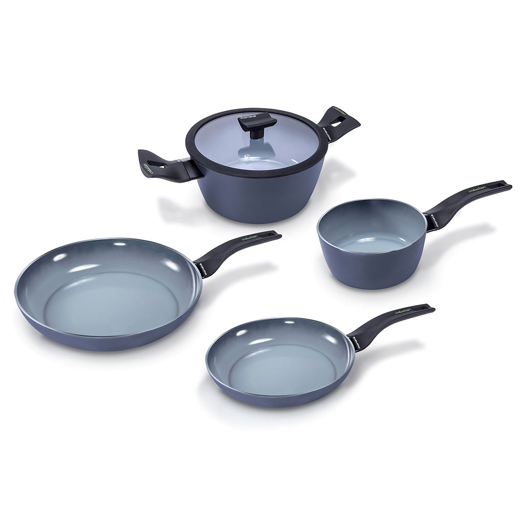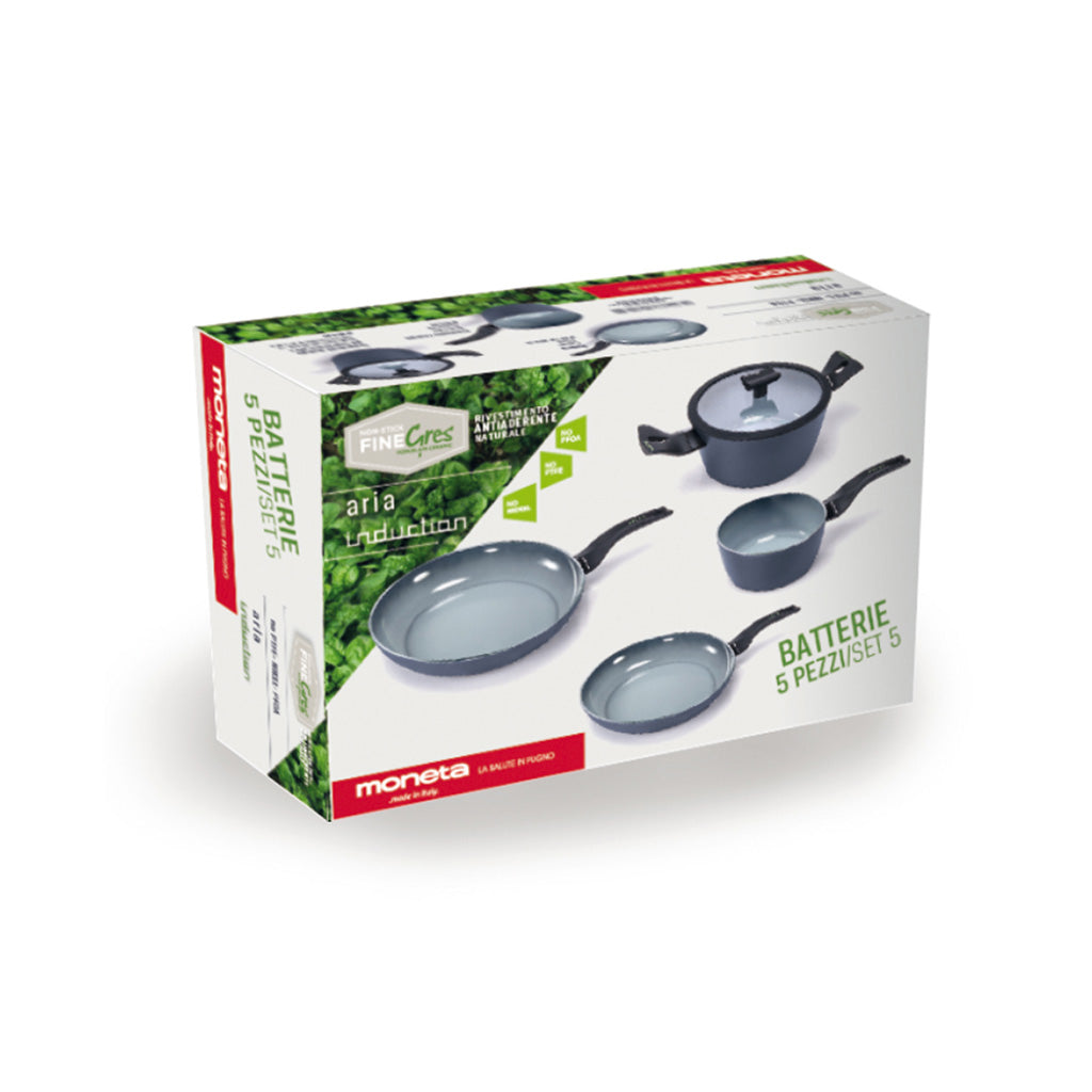 Batteria di Pentole 5 Pezzi Antiaderente Induzione in Alluminio Moneta Aria Finegres
