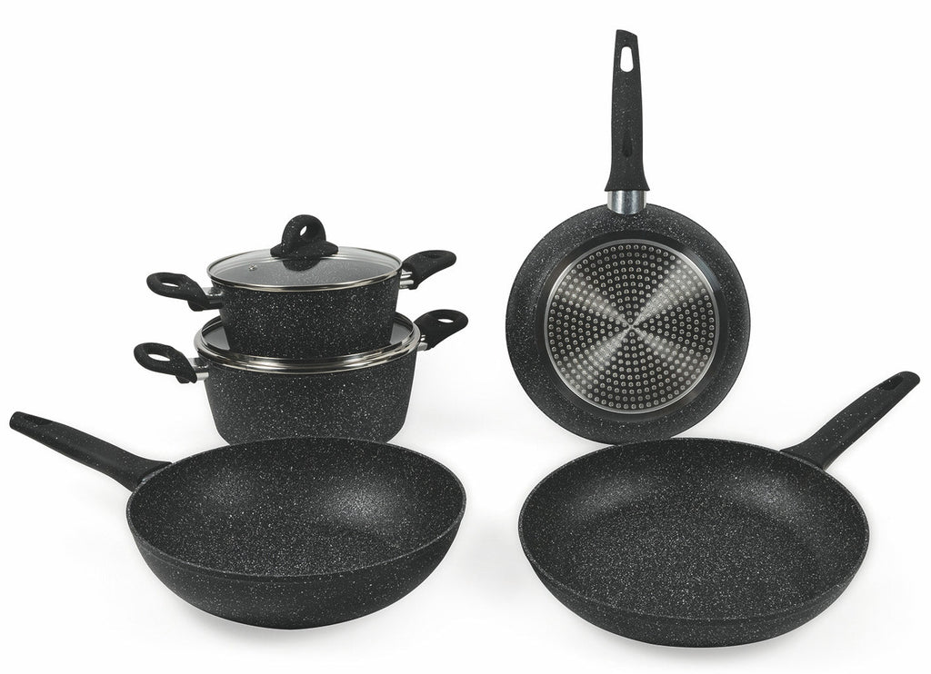 Batterie de Cuisine 7 Pièces en Aluminium Antiadhésif Induction Effet Pierre VdE Tivoli 1996 Galaxy