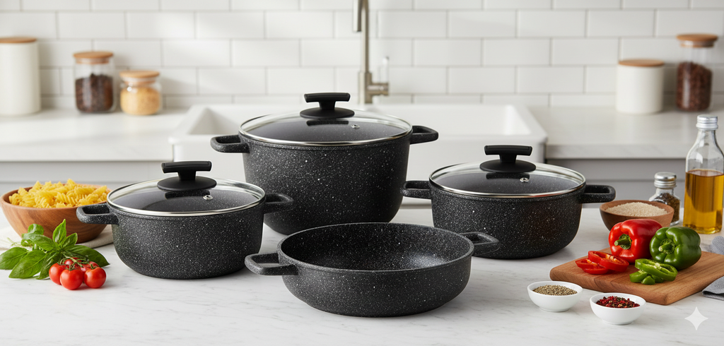 Batterie de cuisine 7 pièces en aluminium moulé sous pression antiadhésive Olympia Hard Cook